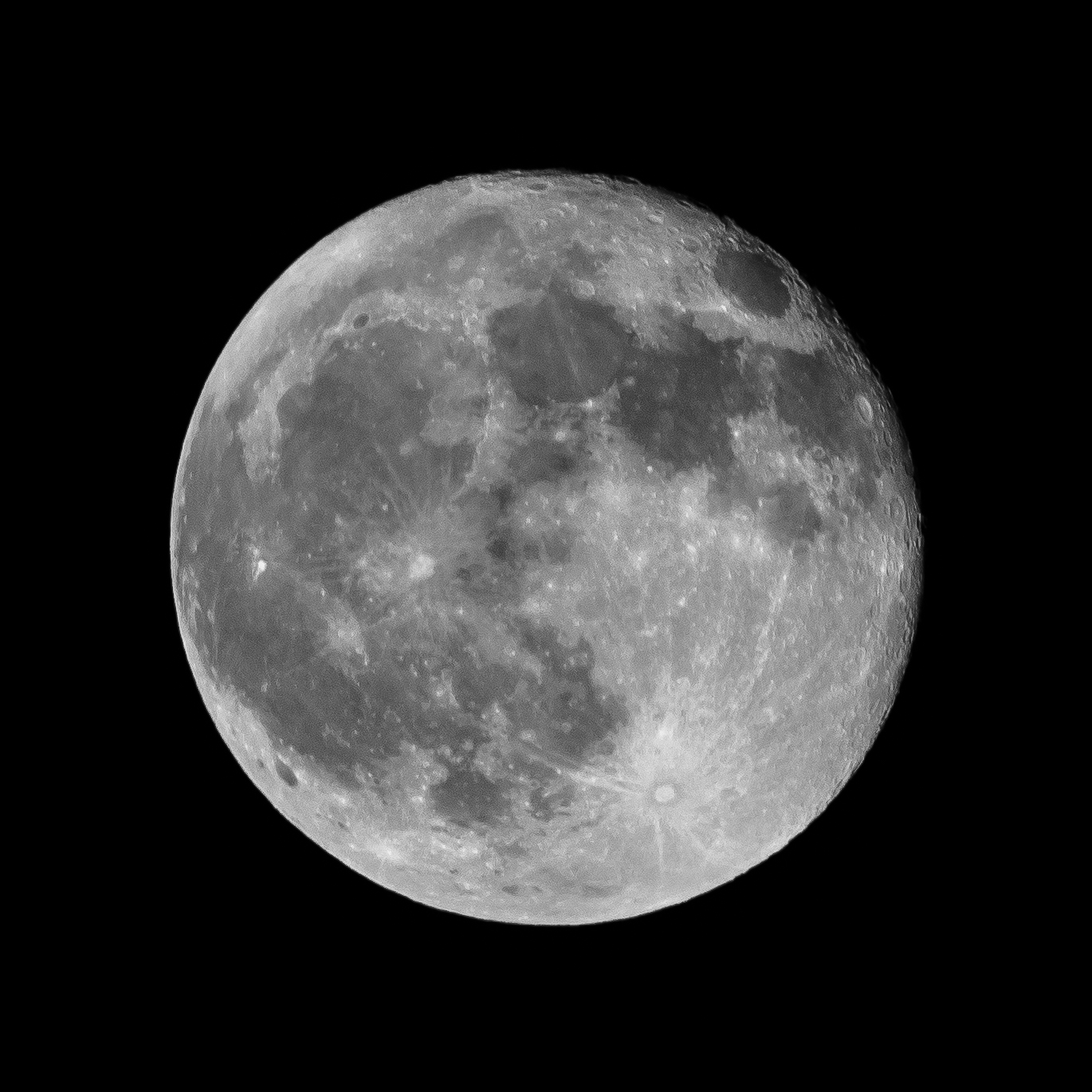 Endlich Vollmond bei wolkenlosem Himmel. Versuche schon seit mehreren Vollmond-Phasen mit dem Teleobjektiv den Mond ins Visier zu nehmen. Leider war das Wetter schlecht oder die Luft war zu trüb, um ein scharfes Foto des Mondes aufzunehmen.
